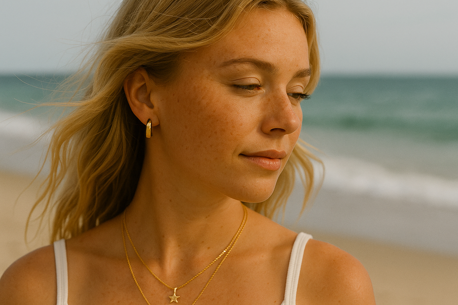 Ruby Ohrringe – Goldene Stecker mit Herz & Glitzer
